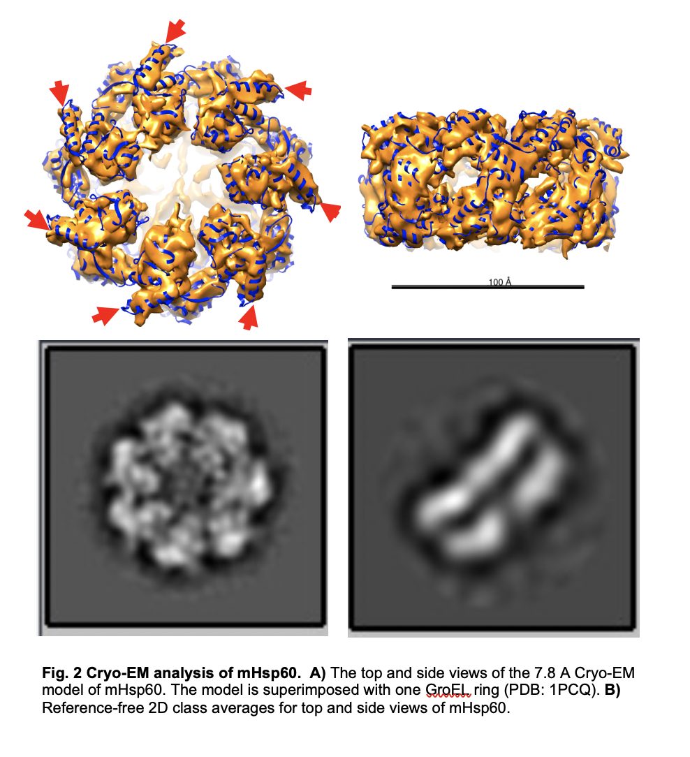 We have developed a protocol to purify active mHsp60 directly, without the need for refolding and reconstitution steps. We are using a range of biochemical, in vivo, and structural techniques, particularly cryogenic electron microscopy (cryo-EM), to elucidate the molecular mechanisms of mtHsp60 and its pathological mutations. One of our ultimate goals is to identify molecular targets for therapeutic development. So far, we have determined the cryo-EM structure of mtHsp60, providing a structural basis for its unique properties. Unexpectedly, we found that a pathological mutation increases both the structural stability and biochemical activity of mtHsp60. We are actively investigating the molecular steps impacted by the mutation and how these effects can be rectified by small molecules. Our studies will contribute to the mechanistic understanding of mtHsp60 and its associated disease processes, as well as the development of mtHsp60-based therapeutics